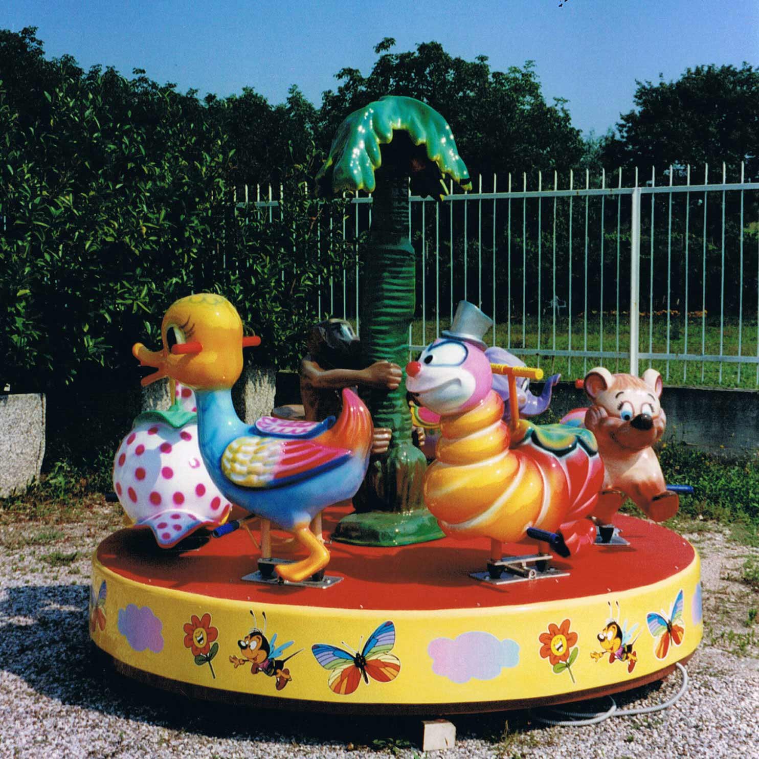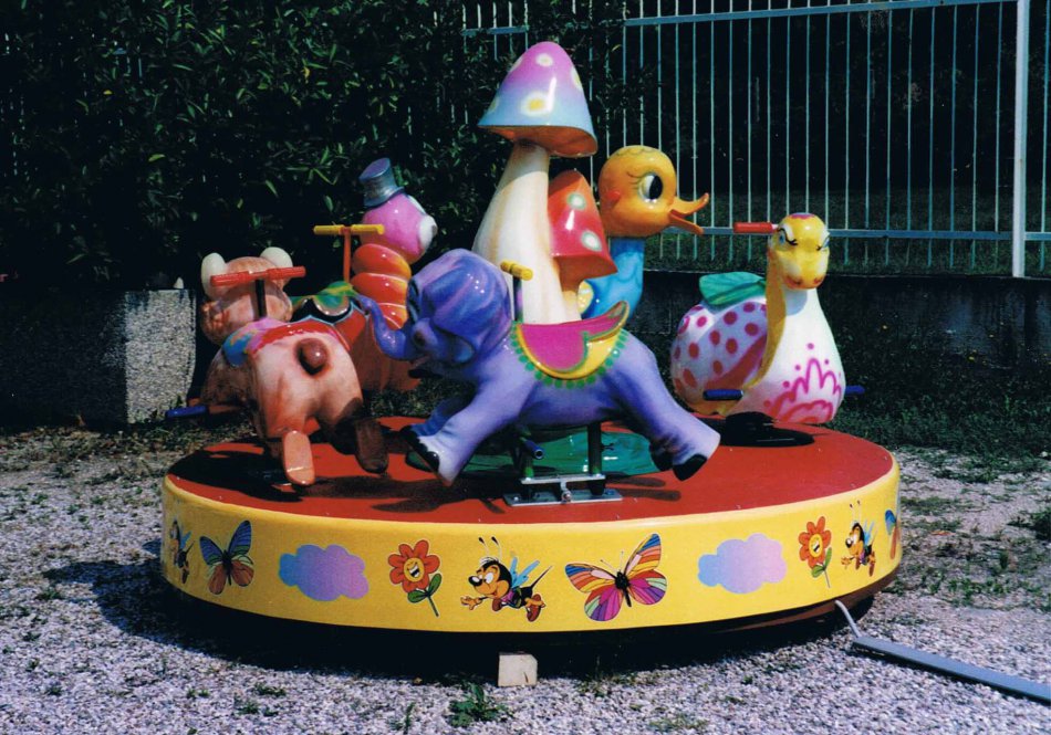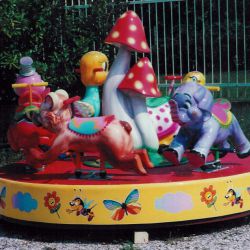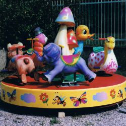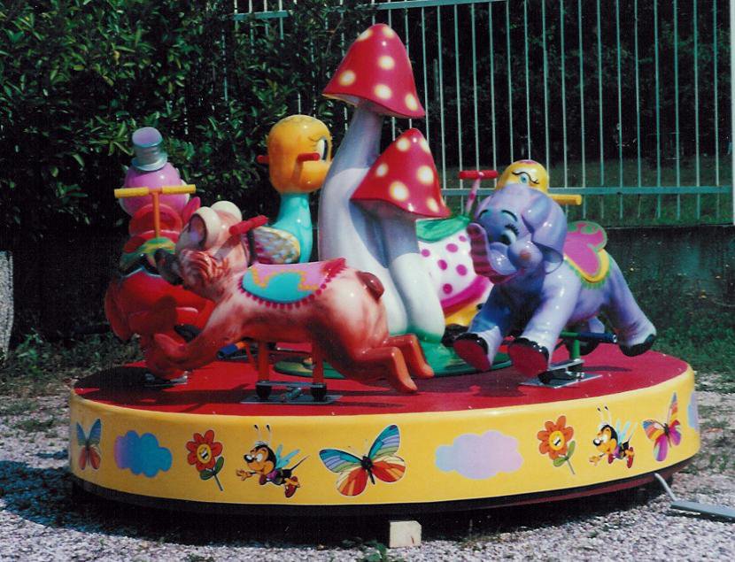 Giostrina con animaletti con piatto girevole in vetroresina rinforzato con struttura in ferro Ø m. 2,10