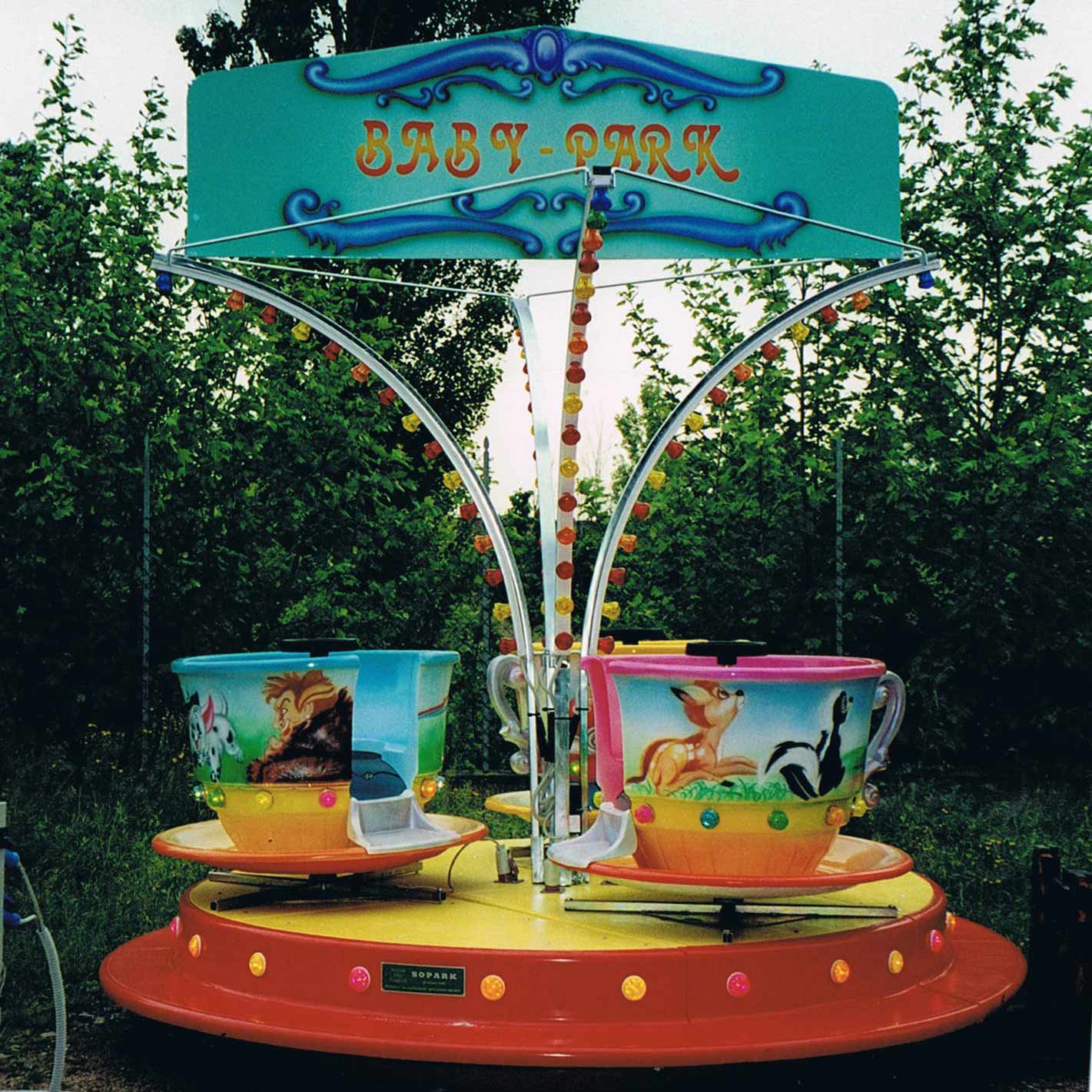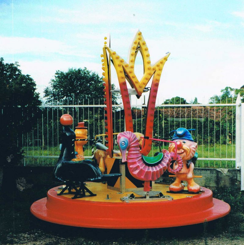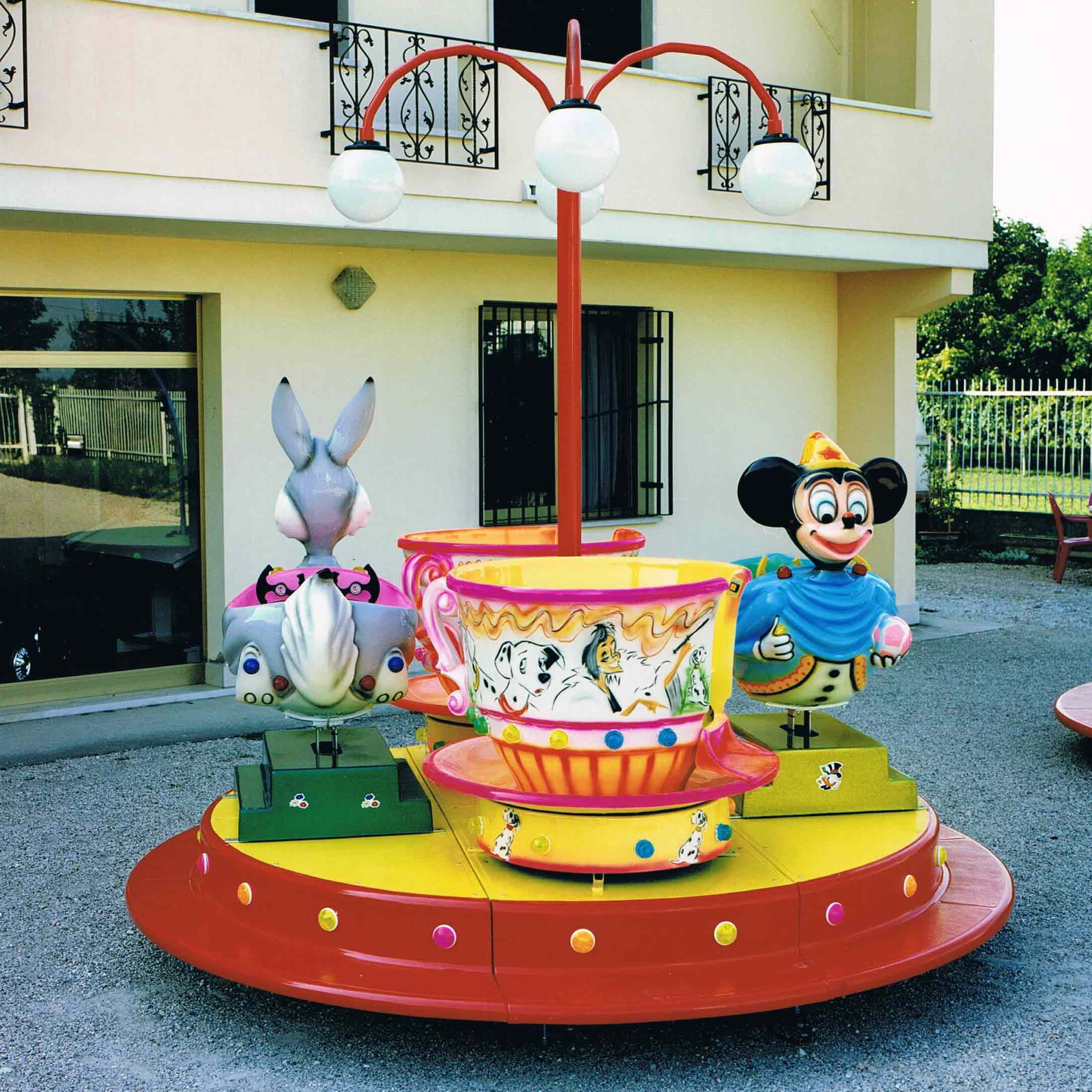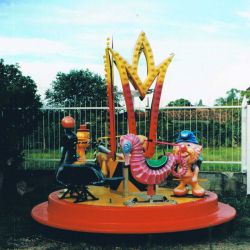 Giostrina con animaletti e con piatto girevole in vetroresina rinforzato con struttura in ferro Ø m. 3,00